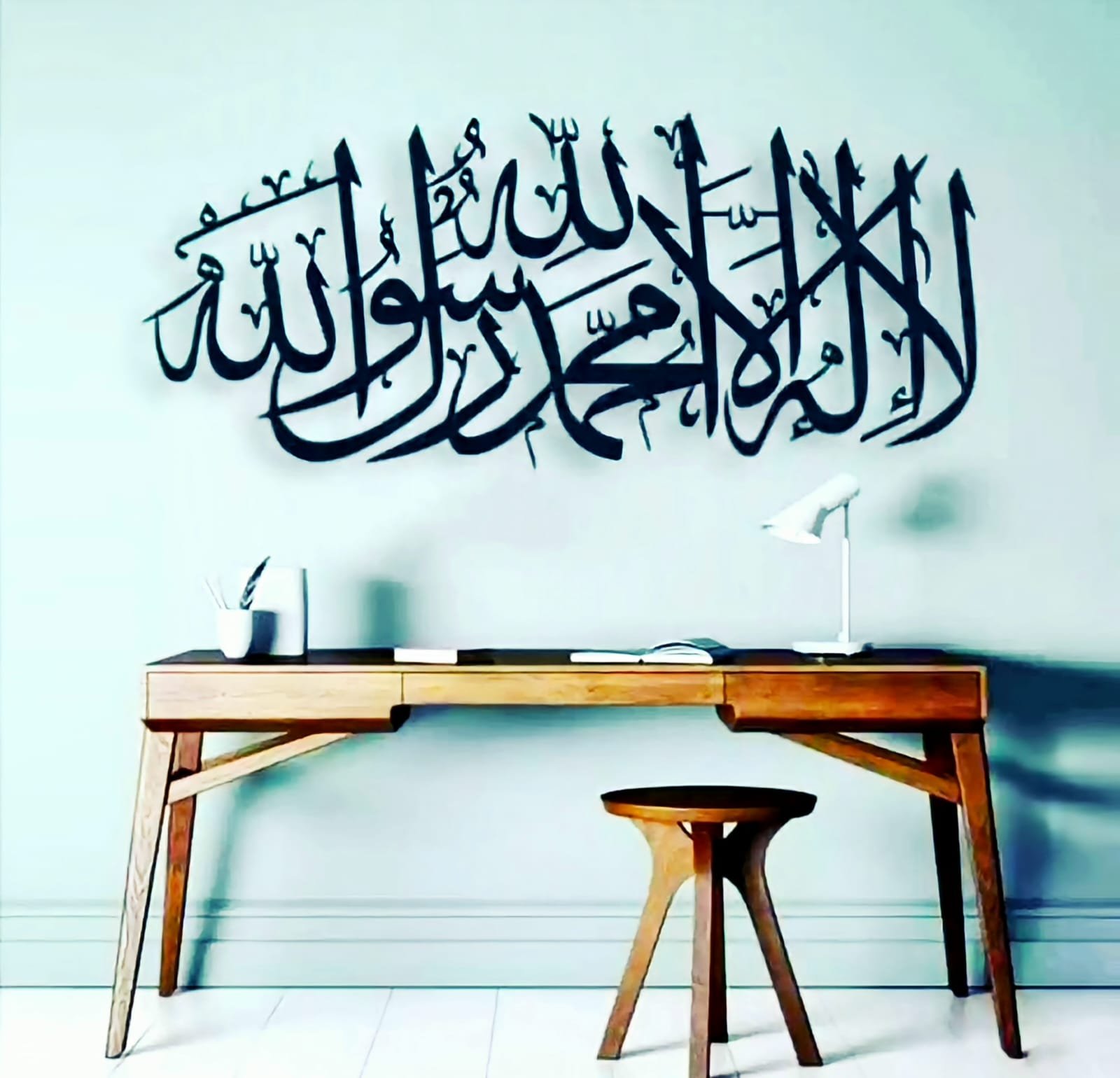 This Kalima Tayiba is a beautiful piece of art that is made of MDF wood and is freestanding. It is a 3D Arabic Calligraphy that is perfect for your home décor. The wooden part is polished and ready to use.